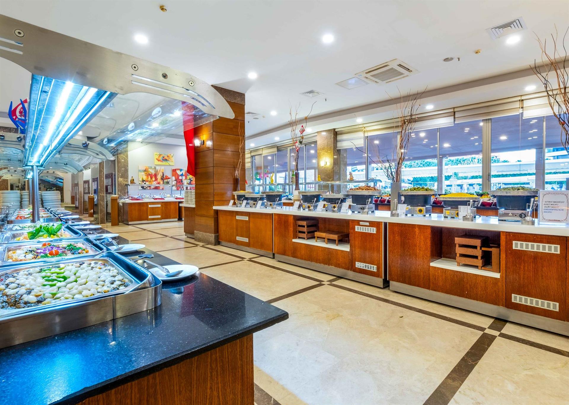 A koncepció a következőket tartalmazza reggeli, brunch, ebéd, vacsora, késői vacsora - büfé, sütemények, fagylalt (01.05-15.10) és snackek megadott időpontokban, helyi alkoholos és alkoholmentes italok.